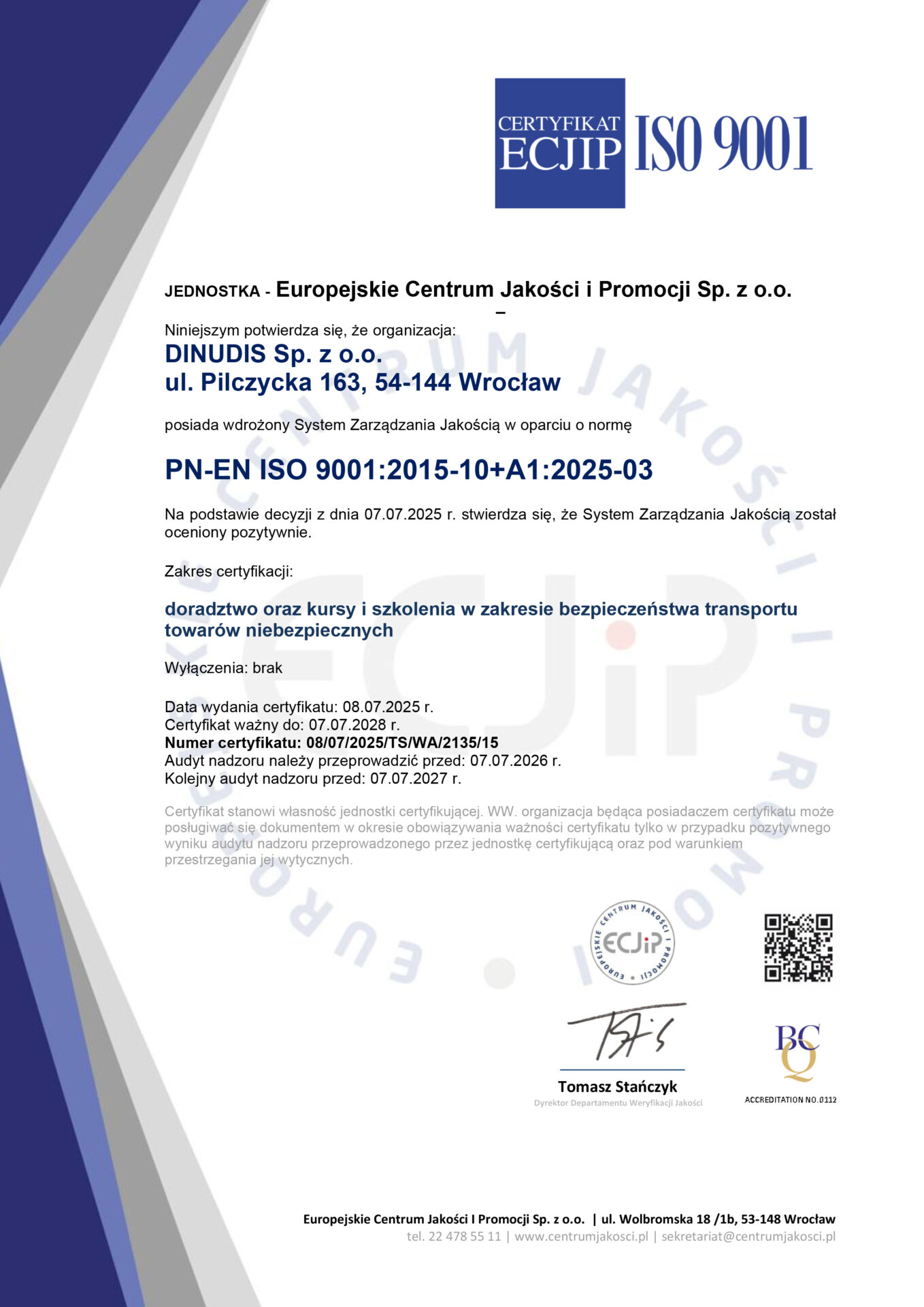 Certyfikat ISO 9001:2015